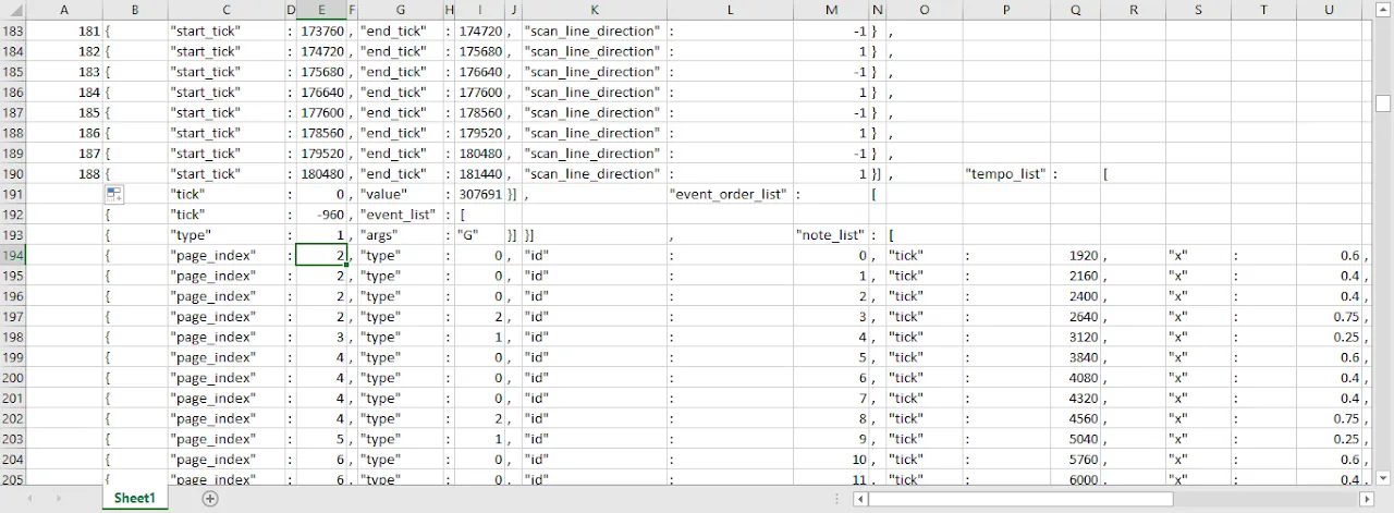 $A= Page Index Array you generated and set to Absolute.B= The note tick.$C= start_tick Array and set to Absolute.