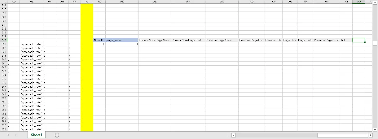In this section, we will add "approach_rate" string to all notes. But doing things globally will make them simply more simple, except if there's any scanline freeze in the middle, you have to modify them yourself.