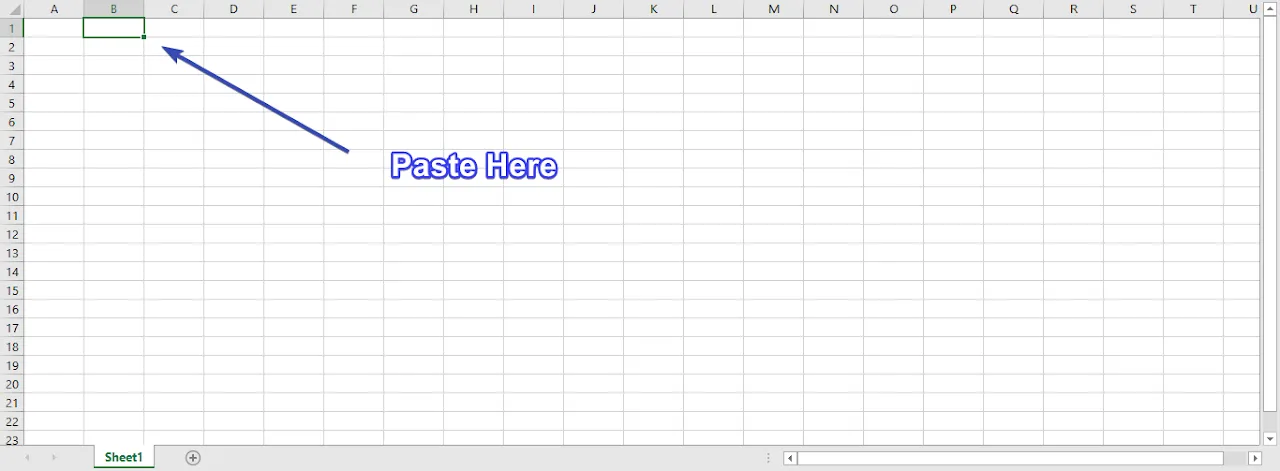 In Excel, select cell B1, and press CTRL+V. Why Cell B1? Because A1 will be used for writing Page Index which is used for Dynamic Page Index later.