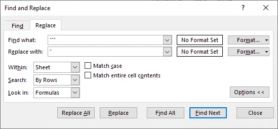 Then click Replace All, or CTRL+A keyboard shortcut.